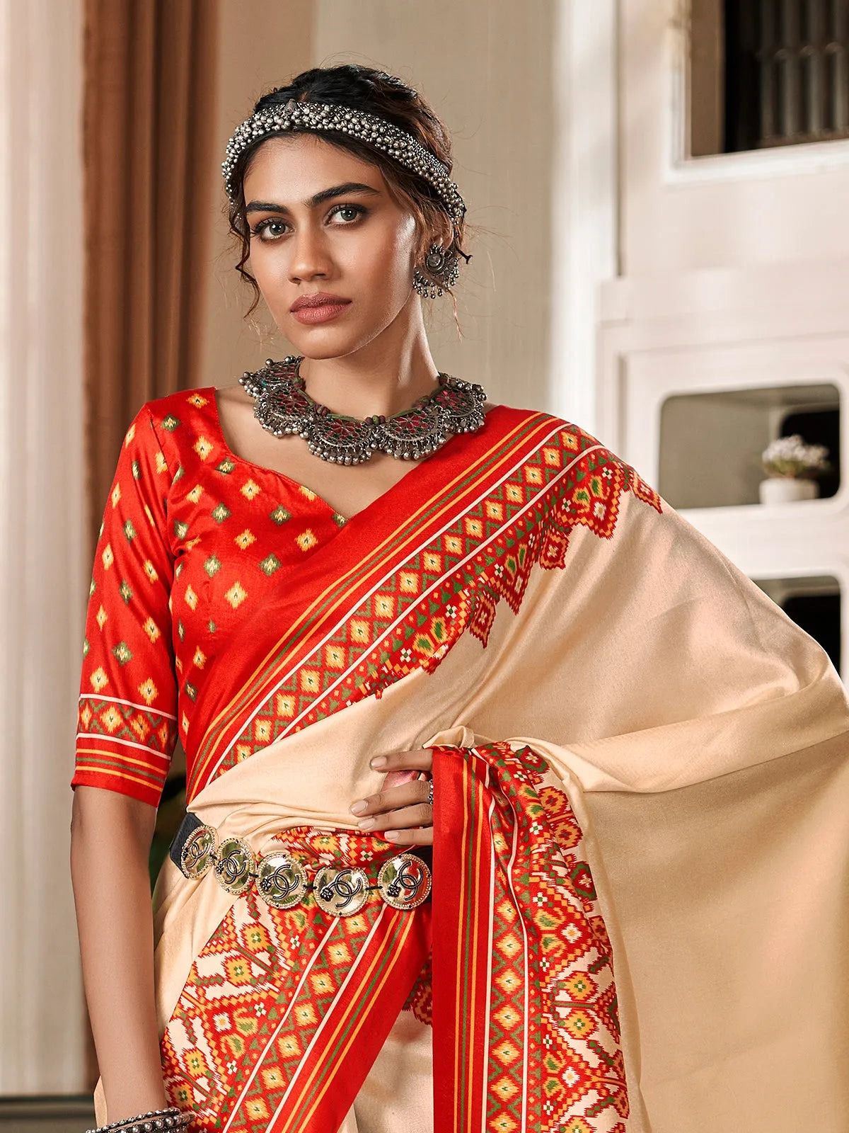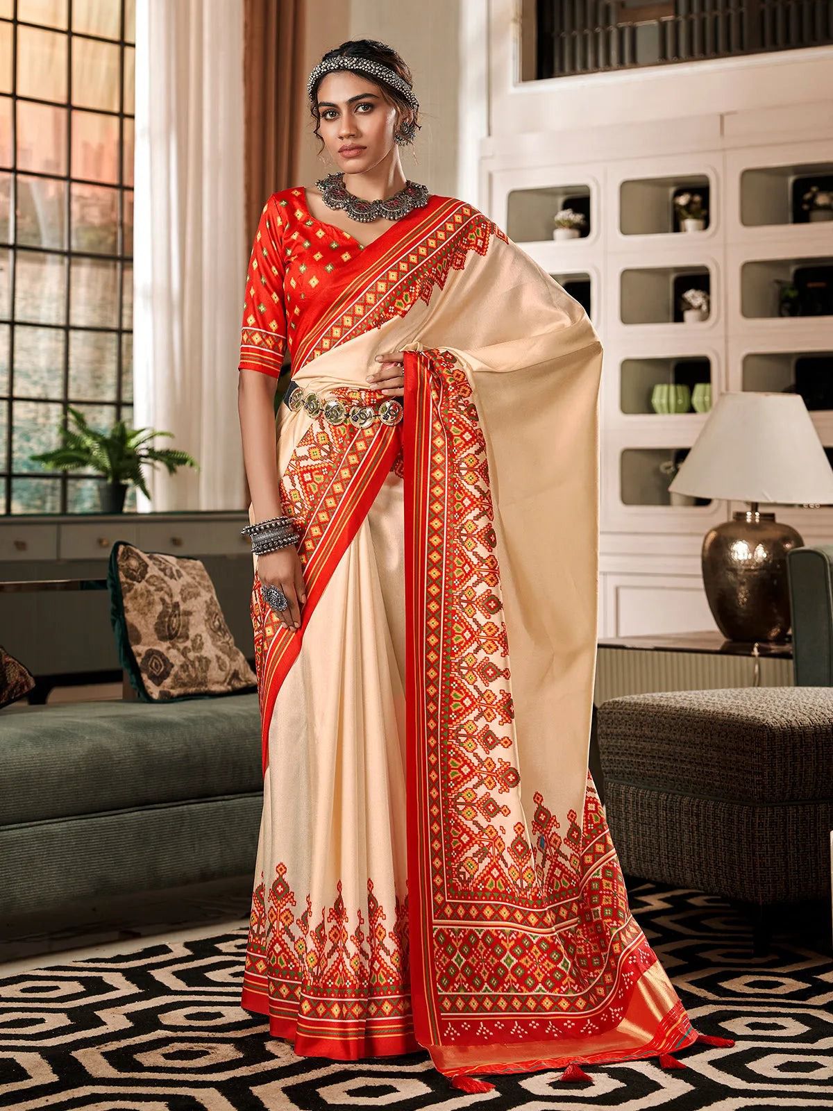 Cream pure Soft patola silk party contemporary saree | DG-211