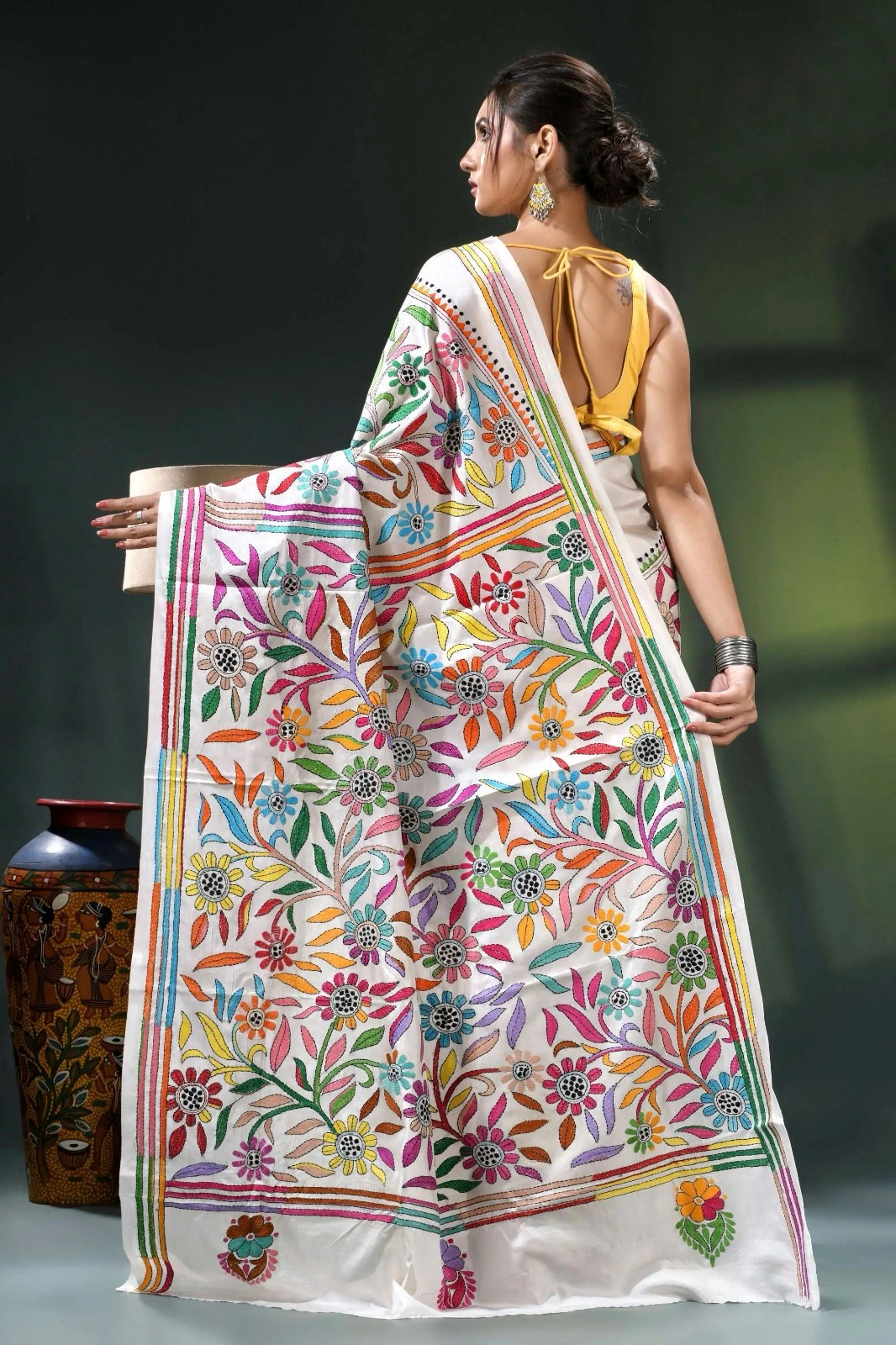 Kantha Design Digital Print Pure Silk Saree With Blouse Piece | DG-220