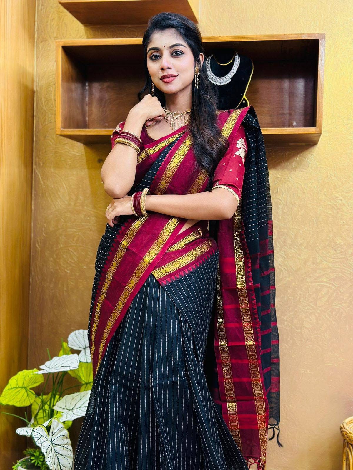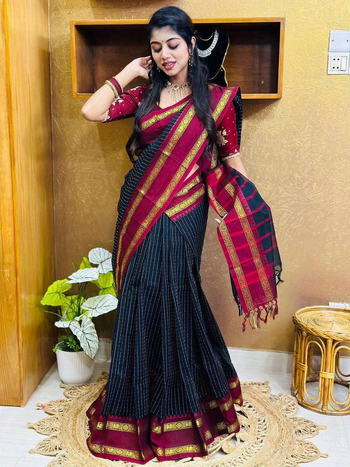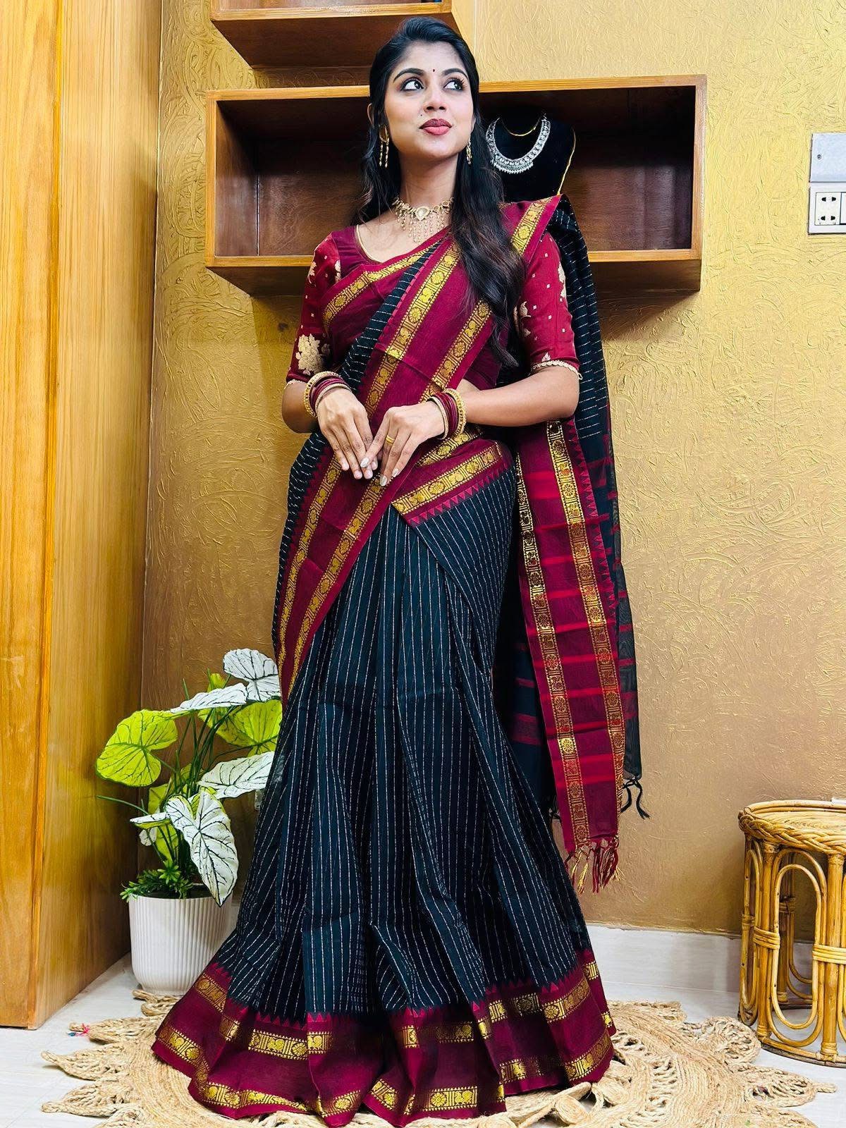 ব্ল্যাক কালারের কাঞ্চি কটন শাড়ি|