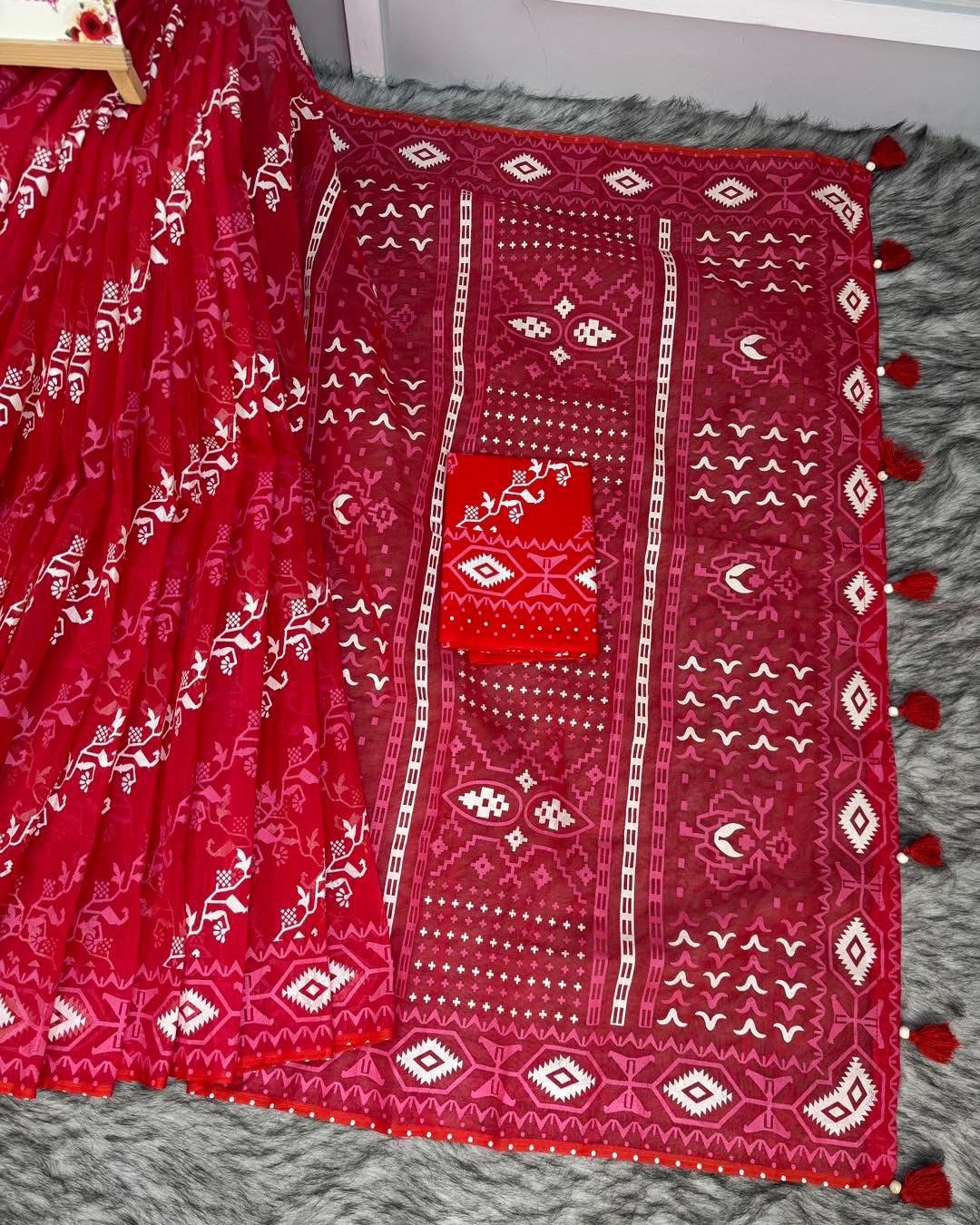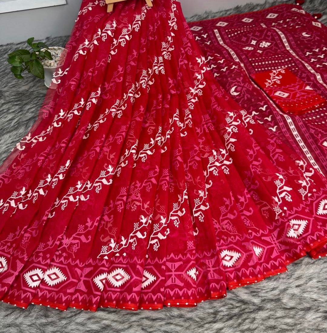 Half Silk Screen Print Saree With Blouse Piece | SPS-106