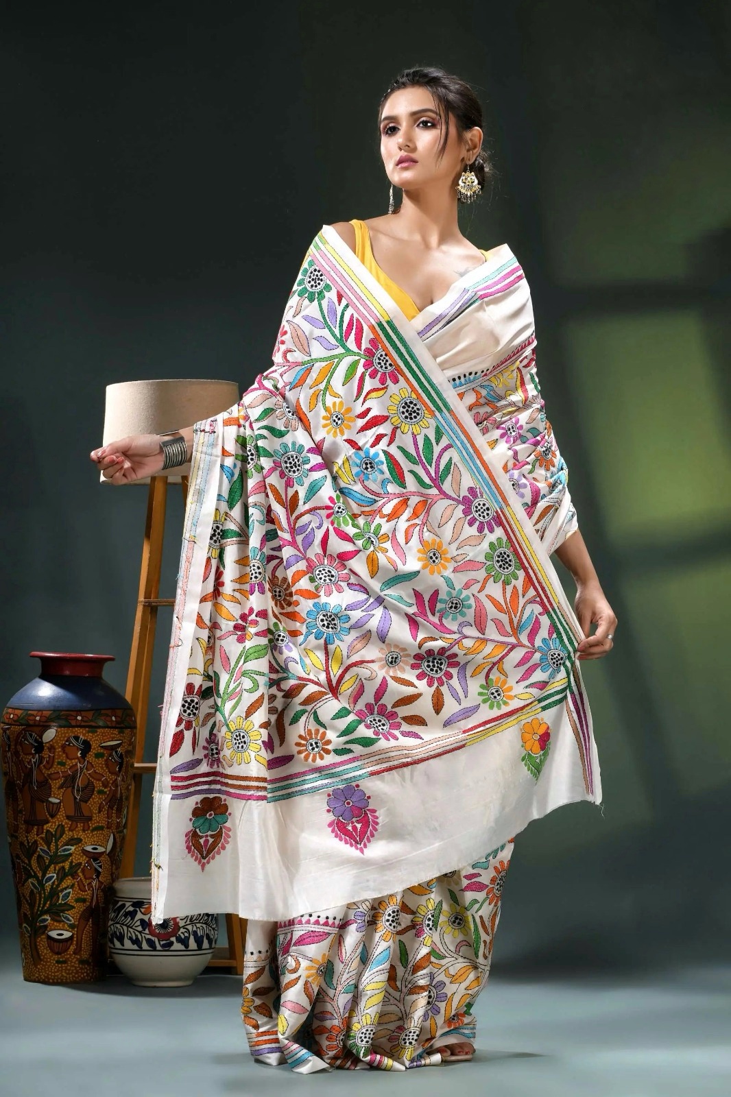Kantha Design Digital Print Pure Silk Saree With Blouse Piece | DG-220