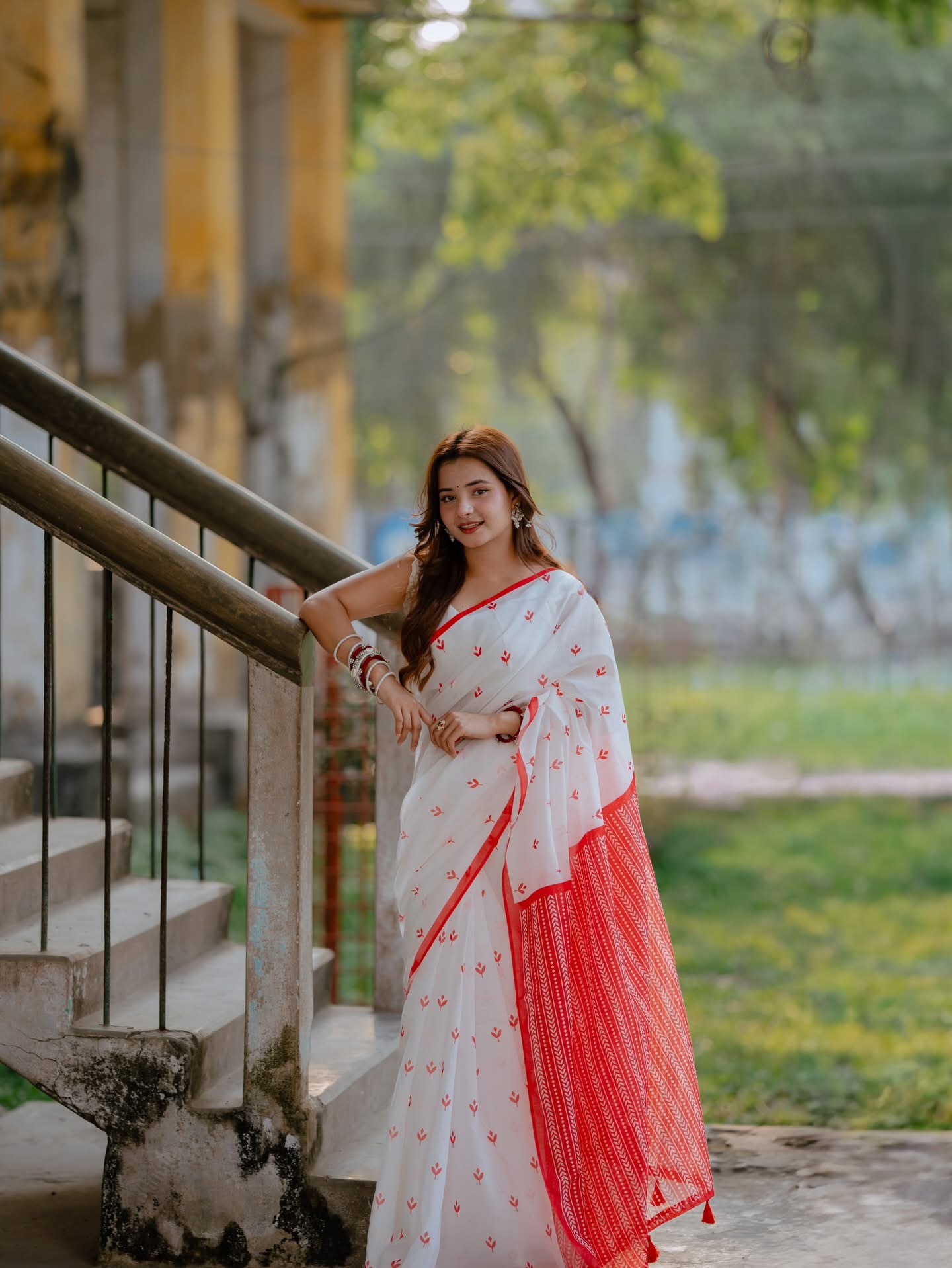 সেমি মসলিন সিল্ক শাড়ী ব্লাউজ পিস সহ